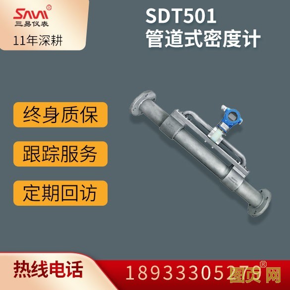 SDT501智能管道式在钱密度计垂直安装于管道流路中,安装方便,适合于管道法兰安装,尤其能够测量粘度较大的介质的密度。